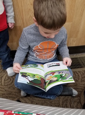 Johnathan before he knocked the tubs down Gavin reading his new book
